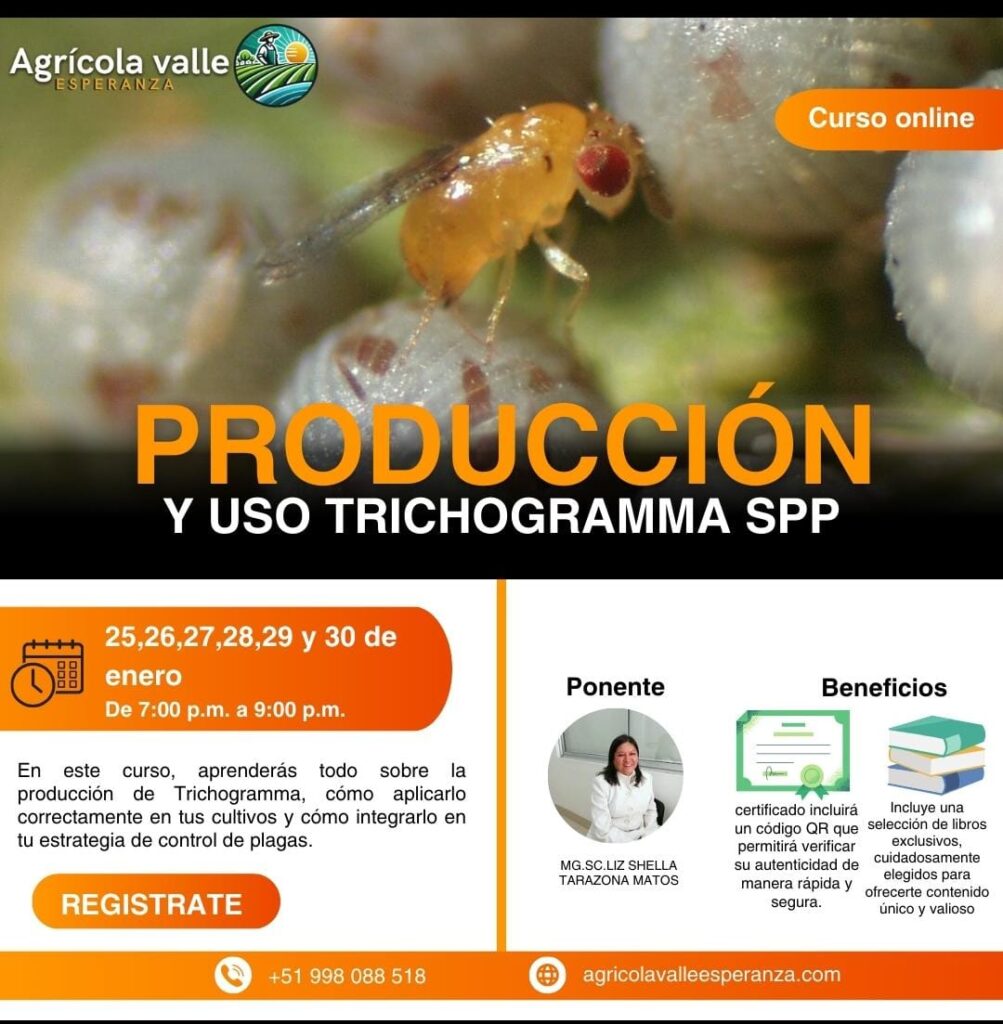 En este curso, aprenderás todo sobre la producción de Trichogramma, cómo aplicarlo correctamente en tus cultivos y cómo integrarlo en tu estrategia de control de plagas.