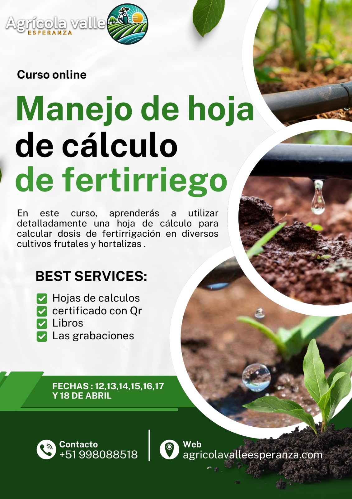 - Se compartirán todas las hojas de cálculo para fertirriego