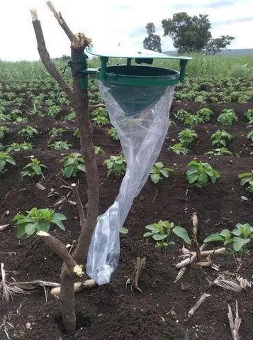Para lograr esto, normalmente se utiliza un buen número de dispensadores de feromona, que liberan gran cantidad de feromona en el ambiente, de forma continua y a lo largo de la temporada de cultivo.